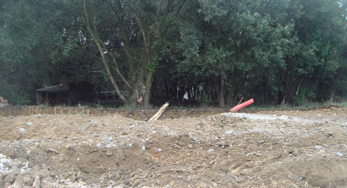 Planta Baja: con una zona muy amplia que incluye salón, por un lado y cocina-comedor por otro, y una zona secundaria compuesta por 2 dormitorios y dos baños. La planta además incluye una pequeña despensa y la escalera de comunicación con la planta primera. Previo al acceso al edificio se ha proyectado un porche. Se disponen salidas directas al jardín desde el salón y desde el ámbito del comedor. La planta se completa con la sala de calderas.