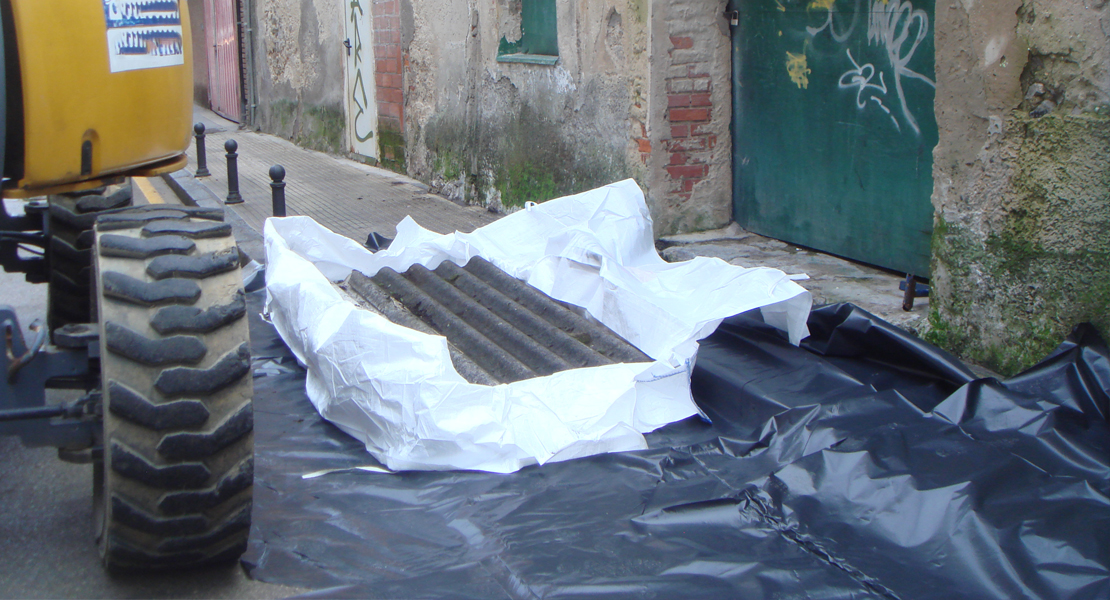 La cubierta es una “tejavana” con techo de fibrocemento “uralita” compuesta por fibras de amianto lo que obligó a realizar un tratamiento especial para su retirada.